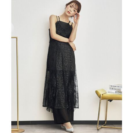 繊細なレースにスパンコール刺繍を施したキャミワンピースを主役に、艶やかなサテンキャミインナー、軽やかなシフォンのシアーパンツをセットにした特別感のある11点セット。