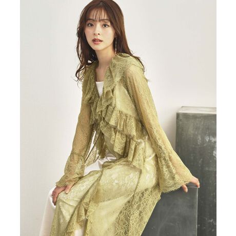 シアーパンツは程よい透け感があり、レースワンピに抜け感をプラス。