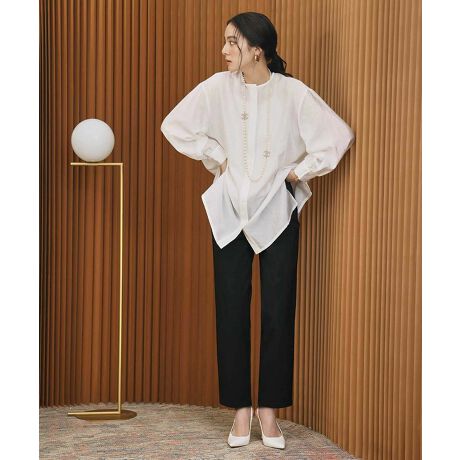 裾にかけて緩やかに細くなるテーパードシルエットにセンタープレス入りですっきりと軽やかな印象に。