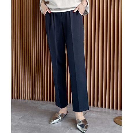裾にかけて緩やかに細くなるテーパードシルエットにセンタープレス入りですっきりと軽やかな印象に。