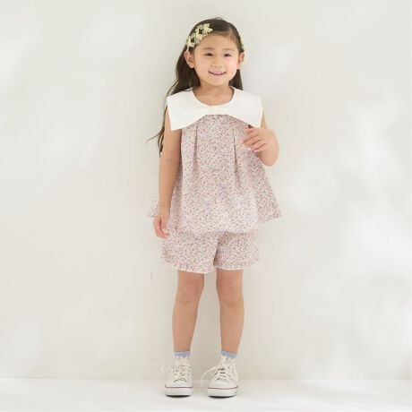 四角いリボン衿がかわいいブラウス&フリルハーフパンツのセットです