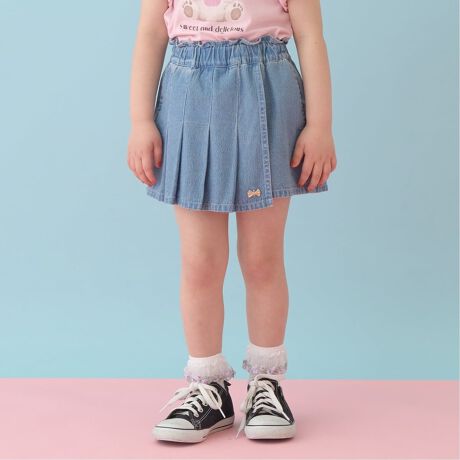 フロントプリーツハートポケットデニムスカパン
