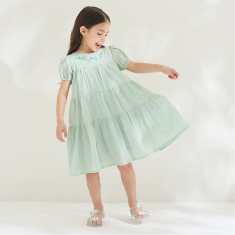 【綿100%】【かるふわ】ティアードワンピース