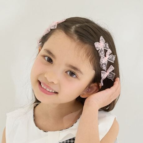 レースリボンミニヘアクリップ(6コセット)