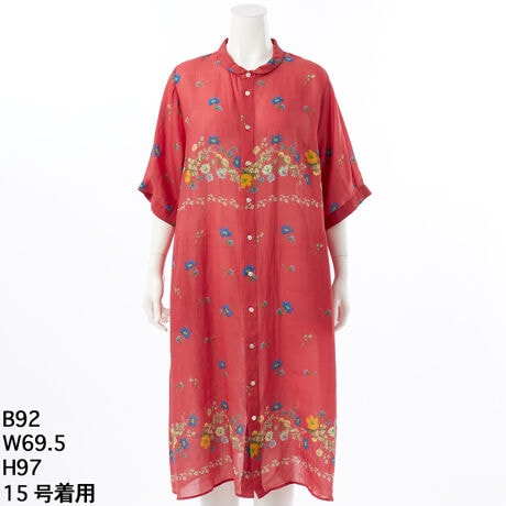 [大きいサイズ]セルロース麻ローン エブリウェアーフラワープリントワンピース(前開き)
