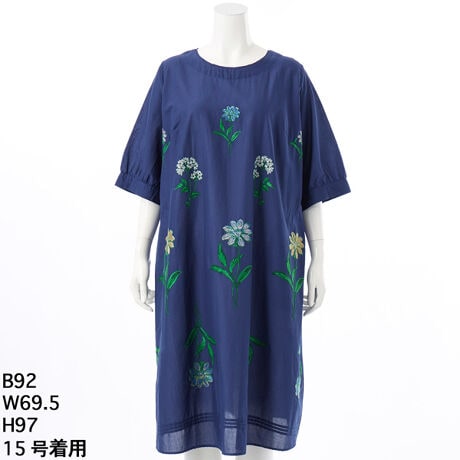 [大きいサイズ]60/-ローンガーベラビッグ刺繍ワンピース