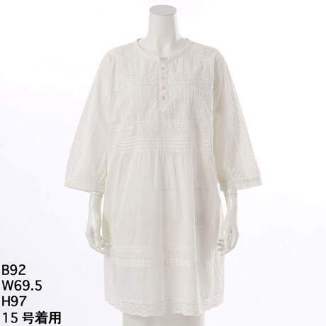 [大きいサイズ]ローン×レーステープパッチワーク×天竺チュニックブラウス
