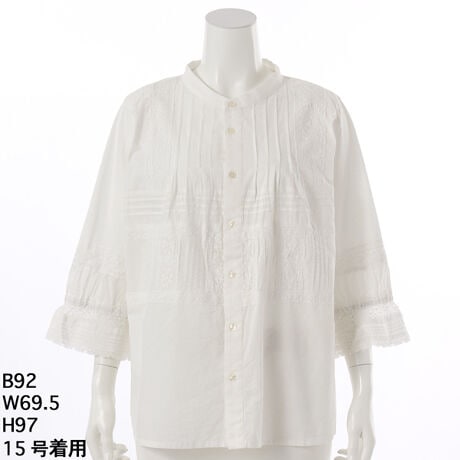 [大きいサイズ]ローン×レーステープパッチワーク×天竺ピンタックブラウス