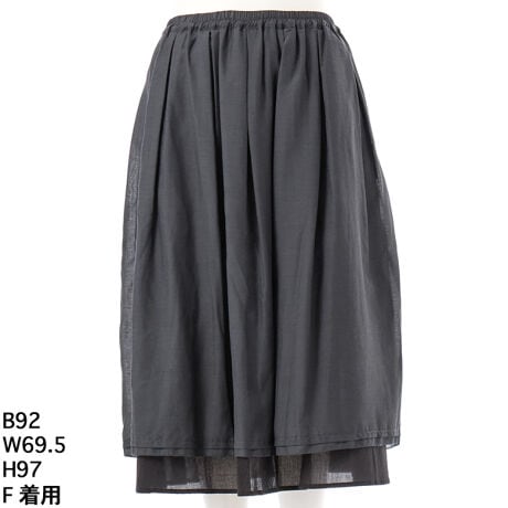 [大きいサイズ]ポリエステル麻+コットンローン レイヤードスカート(裏地付き)
