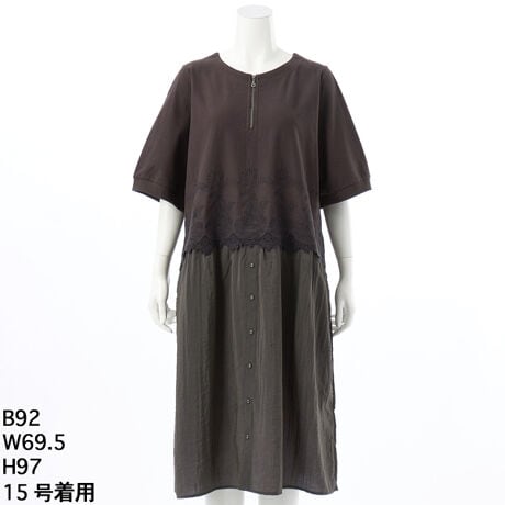 ミニ裏毛とローン生地を組み合わせたジップアップワンピース。
