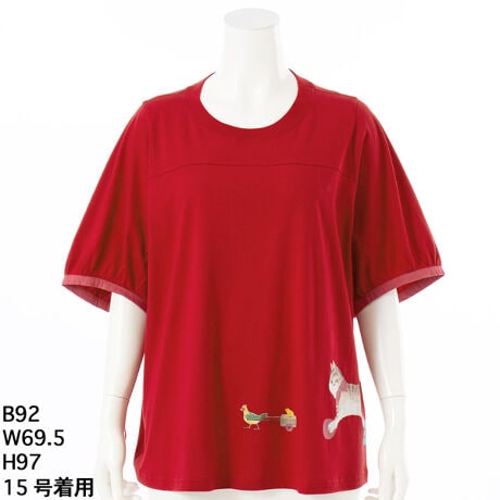 脇線を後ろにまわし、前から後ろにかけて猫と鳥のプリントがかわいらしい一枚です。