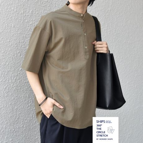 接触冷感機能が嬉しい!暑い時期に重宝するバンドカラーの半袖シャツ