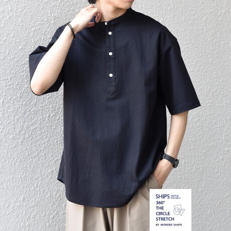 接触冷感機能が嬉しい!暑い時期に重宝するバンドカラーの半袖シャツ