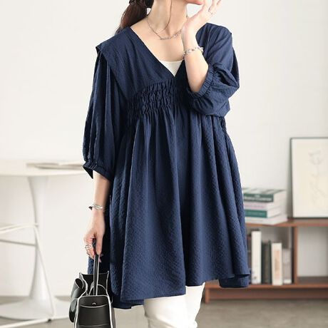 【大きいサイズ】 肩タックシャーリングチュニック 大きいサイズ レディース チュニック 肩タック