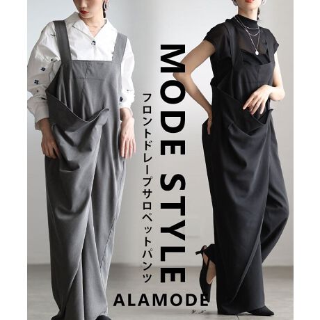 流れるようなドレープデザインが目を惹くモードなサロペットパンツ。シンプルながら存在感があり、着るだけでコーデがぐっと洗練された印象に。大人のスタイルにぴったりな一着です☆