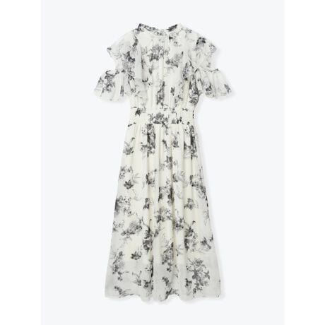 フラワーリボンフリルノースリーブワンピース