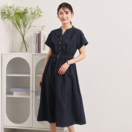 一枚でサマになるブラウジングワンピースは、ウエストマークで上品見え。