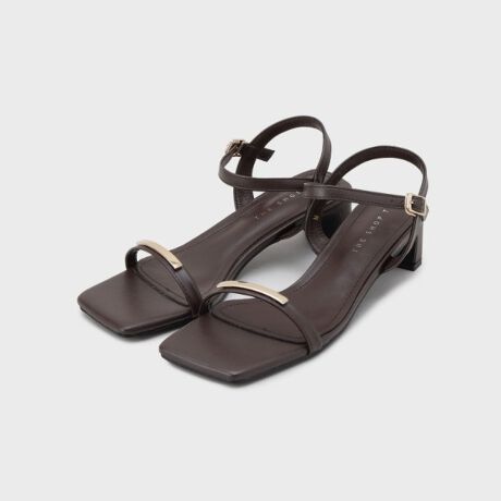 華奢ストラップにゴールドバーがきらりと映えるミニマルサンダル。