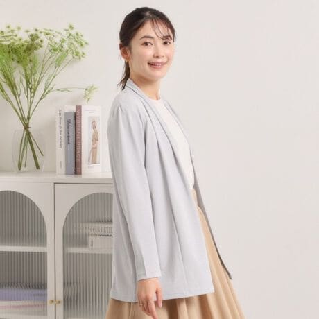 さらりと羽織れて冷房対策にも使える、着流しタイプのミディアム丈カーディガン。