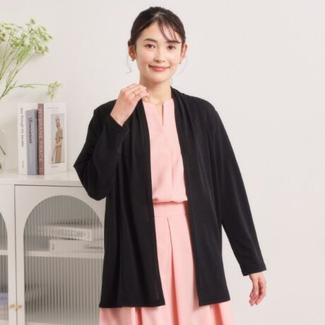 さらりと羽織れて冷房対策にも使える、着流しタイプのミディアム丈カーディガン。