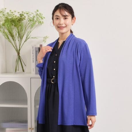 さらりと羽織れて冷房対策にも使える、着流しタイプのミディアム丈カーディガン。