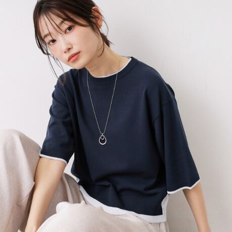 1枚で重ね着スタイルが完成するレイヤードトリックニット。