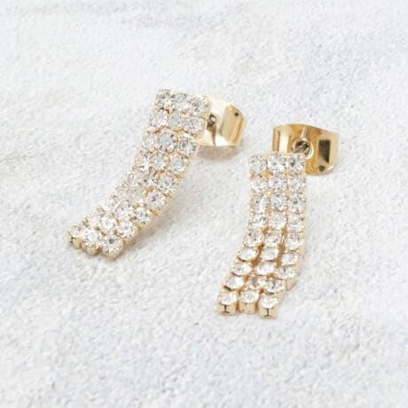 繊細に煌めくビジューと揺れるフリンジが特徴の、大人のためのミニピアス。