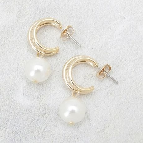 モダンとクラシックが交差する、メタルハーフムーン×フェイクパールピアス