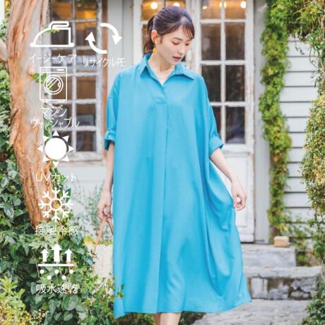 たっぷりの裾幅がエレガントなフォルムを描くテントラインのワンピース。