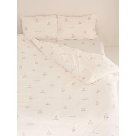 アイスとシロクマをデザインした総柄寝具3点セットです。手軽にお部屋の模様替えも可能な、掛けカバーとボックスシーツ、枕カバーの組み合わせ。アイス柄は配色をきかせてフレーバーを表現。枕を抱いているシロクマは表情にも注目です。色はシロクマ柄のAとアイス柄のBの2色展開。