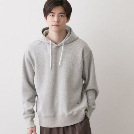 しっかりとしたワッフル素材のフーデッドパーカ。