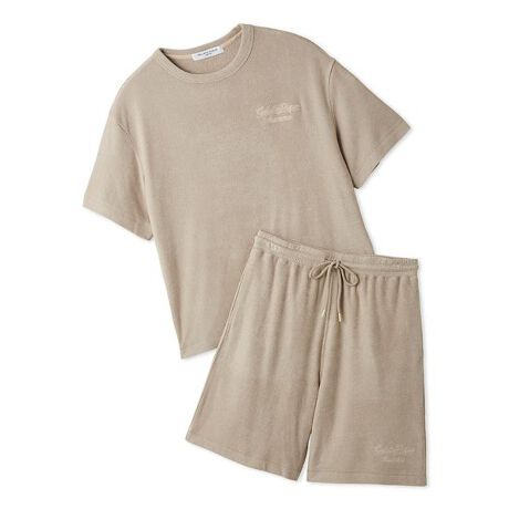落ち着きある配色に、ワンポイントの筆記体ロゴ刺繍を添えた、USAGI ONLINE限定のHOMMEセットアップです。肌にひんやりと涼しく感じる接触冷感と、UVカットを備えた夏にうれしい機能素材を使用したベーシックなTシャツとポケット付きハーフパンツの組み合わせ。汗ばむ時期のお風呂上がりや、旅先でリラックスしたいときにもおすすめのアイテムです。色は落ち着きのあるベージュ、ミント、ダークグレー、ネイビーをご用意。シンプルで飽きのこないデザインでギフトにもおすすめです。