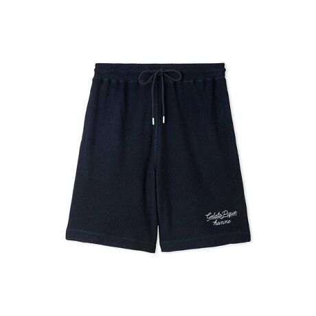 肌に涼しい接触冷感と、UVカット機能を備えた夏らしいパイル素材のシリーズです。ポケット付きのベーシックなシルエットで仕上げたハーフパンツ。左裾に入れた筆記体ロゴと、紐先のアグレットにあしらった配色デザインをさりげなくリンクさせた、ミニマルなデザインがポイントです。リラックスしたシーンにも重宝する1枚。色はベージュ、ミント、ネイビーとONLINE限定カラーのダークグレーをご用意しました。同シリーズのTシャツやパーカと組み合わせてお楽しみいただけます。