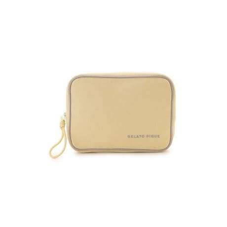 夏の明るいカラーリングに配色パイピングを効かせた、ロゴ刺繍入りのストラップ付きポーチです。配色のロゴ刺繍を添えた、やや大きめのサイズ感が実用的なスクエア型。ファスナーを開けると両サイドに大小のポケットが付いており、普段使いのポーチにはもちろん、旅の小物をまとめたりワンマイルのお出かけにも重宝するアイテムです。色はイエローとピンク、ブルーの3色展開。同シリーズのシャツやハーフパンツと合わせてお楽しみください。