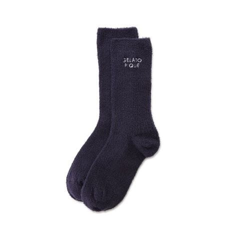 なめらかな肌触りで愛される定番ニット’スムーズィー’を使用したソックスです。シンプルで年齢やテイスト問わず、手に取りやすい無地のデザインで仕上げたソックスはGELATO PIQUEのロゴ刺繍入り。色はネイビーでギフトにもおすすめです。