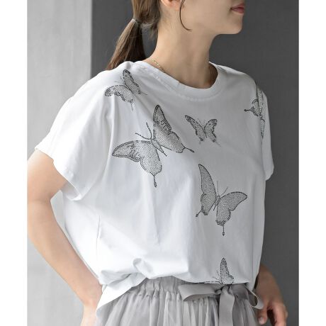 ラインストーンのプリントがリッチなカットソーTシャツ