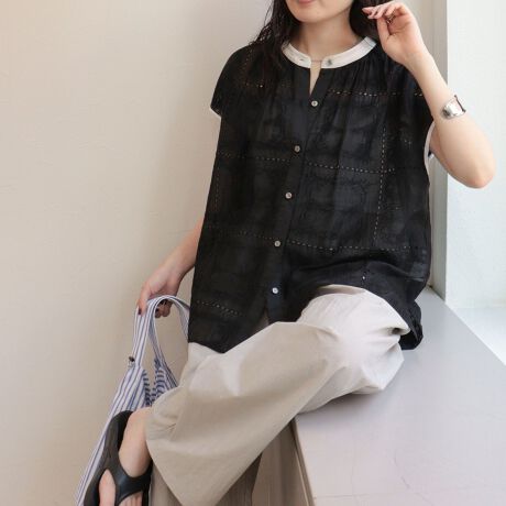 涼やかに映える、大人の刺しゅうレースブラウス