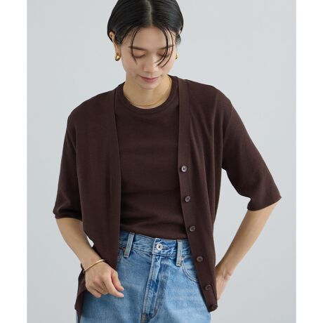 LOTUS ハーフスリーブVネックカーディガン / アンサンブル対応