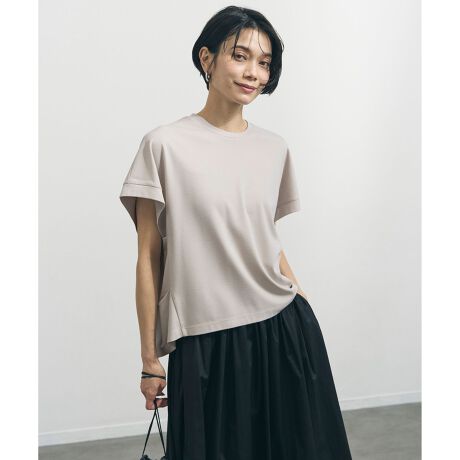 ■デザイン身体が泳ぐようなたっぷりとしたシルエットのドルマンTシャツ。大胆にあいた袖ぐりと後ろタックによるコクーンシルエットにより、抜け感を演出します。後ろにはテープ付きのファスナーが付いているので着脱もスムーズ。デニムを合わせた爽やかな着こなしから、スラックスやIラインスカートを組み合わせたきれい目コーデまで、幅広く活躍するアイテムです。