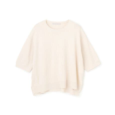 ■デザインクロップド丈のボクシーシルエットでこなれ感を演出するニット。前後差をつけたヘムラインとサイドスリットでどんなボトムとも合わせやすい万能トップスです。肘まである袖丈で、晩夏から秋まで着用いただけます。