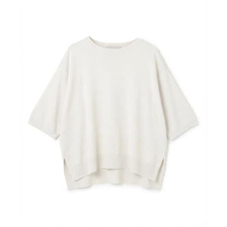 ■デザインクロップド丈のボクシーシルエットでこなれ感を演出するニット。前後差をつけたヘムラインとサイドスリットでどんなボトムとも合わせやすい万能トップスです。肘まである袖丈で、晩夏から秋まで着用いただけます。