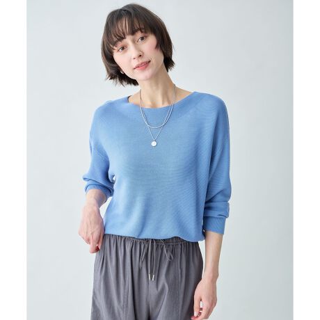 ・シンプルながら、ボトムスを選ばない絶妙なシルエットと丈感が魅力・浅いボートネックが首まわりをすっきり見せてくれる