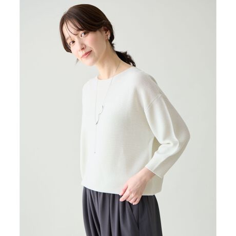 ・ほどよいサイズ感なので、どんなボリューム感のボトムスともマッチ・テーパードパンツと合わせればオフィススタイルにも使える・すっきりとした首まわりなので、ネックレスを付けると映えておすすめ◎
