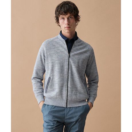 2種類の糸を使用し、丁寧にジャカード編みで仕上げたニットブルゾンです。麻ニット特有のお手入れの難しさや着崩れがなく、驚くほどの軽さを実現しました。夏の羽織りとして快適にお召しいただけるデザインです。