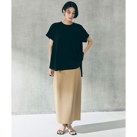 ■デザインミラノリブのナローラインのニットスカート。程よくフィットしつつ肉感を拾いにくく、女性らしいきれいなボディラインで着用いただけます。シンプルなデザインでシーンやスタイルを選ばない、ストレスフリーな万能ニットスカートです。