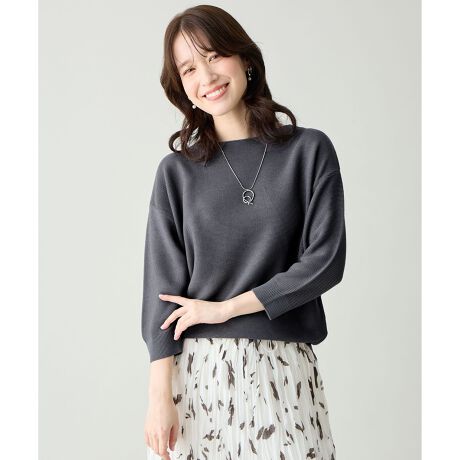 ・シンプルながら、ボトムスを選ばない絶妙なシルエットと丈感が魅力・浅いボートネックが首まわりをすっきり見せてくれる