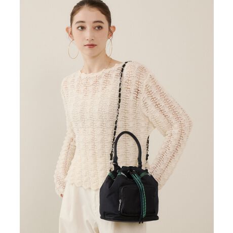 軽やかなリップストップナイロンに、シンセティックレザー(合皮)のハンドルとチェーンストラップを組み合わせました。鮮やかな2本のカラーコードがアクセントとなり、カジュアルさの中に洗練された印象をプラスしています。