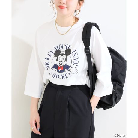 「ミッキーマウス」デザインのラグランスリーブ7分袖カットソー。