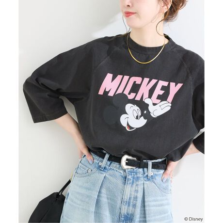「ミッキーマウス」デザインのラグランスリーブ7分袖カットソー。