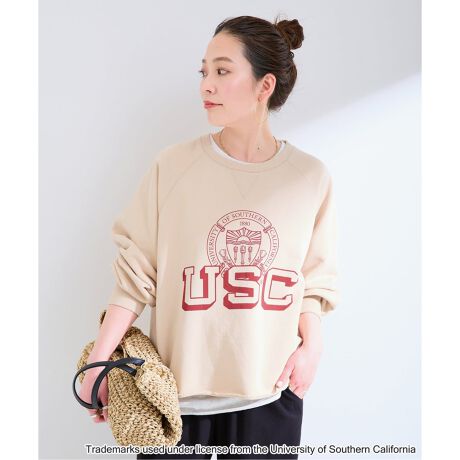 南カリフォルニア大学オフィシャルのスウェット。オリジナルで制作したボディを使用。ゆったりした身幅と短い切りっぱなしの裾、ボリュームのあるラグラン袖が特徴で、上品な印象を与えます。